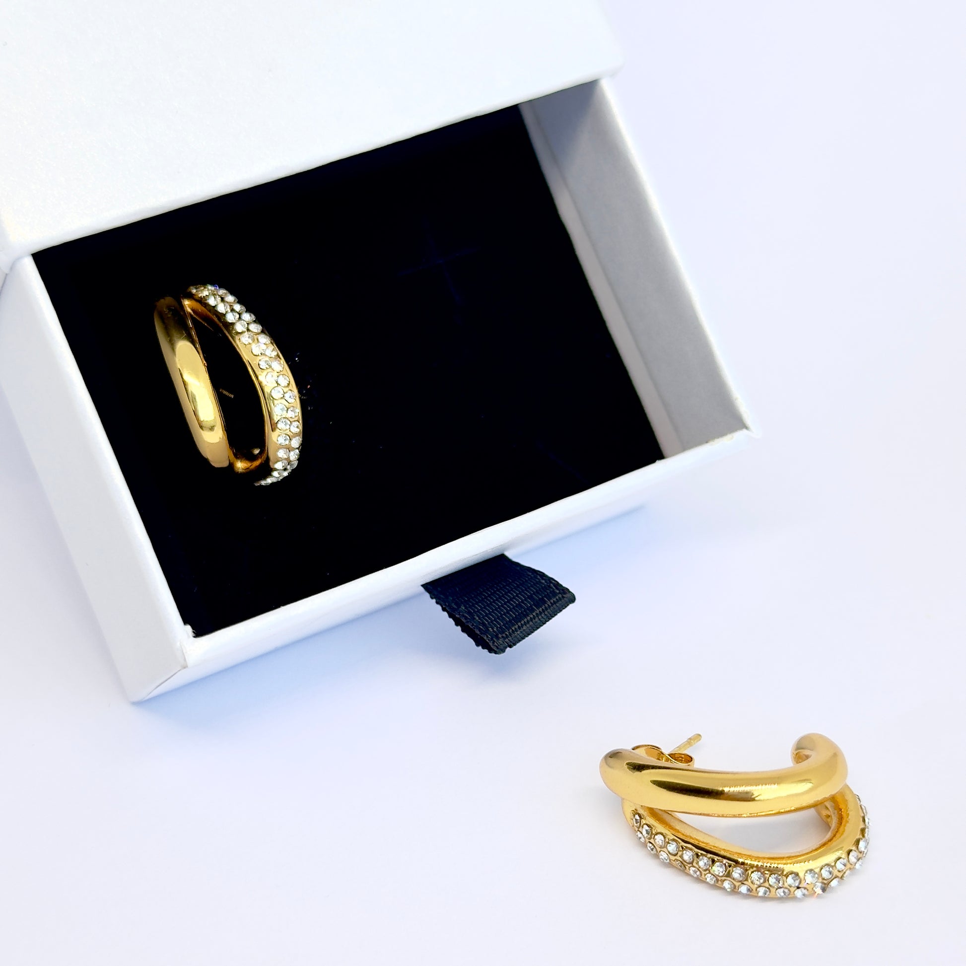 Celina Earrings - where one hoop meets another adorned with sparkling stones - a refined touch of glamour.