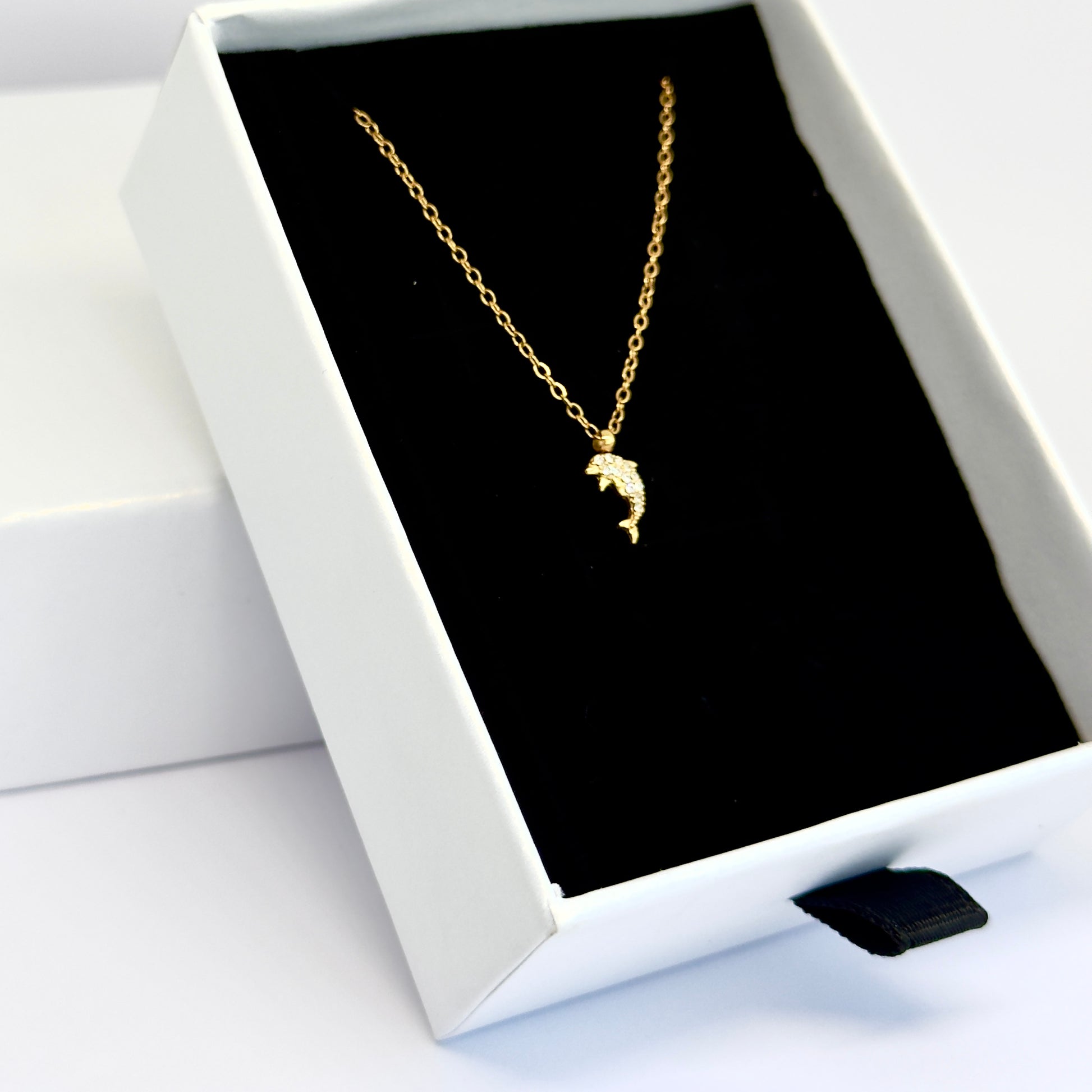 Delicate and graceful, the Dolphin Whisper Necklace features a fine, barely-there chain adorned with a tiny dolphin charm. Symbol of freedom and joy, the miniature pendant adds a soft, playful touch to an understated silhouette. Light as a breeze and full of meaning, it’s the perfect everyday piece for ocean souls.