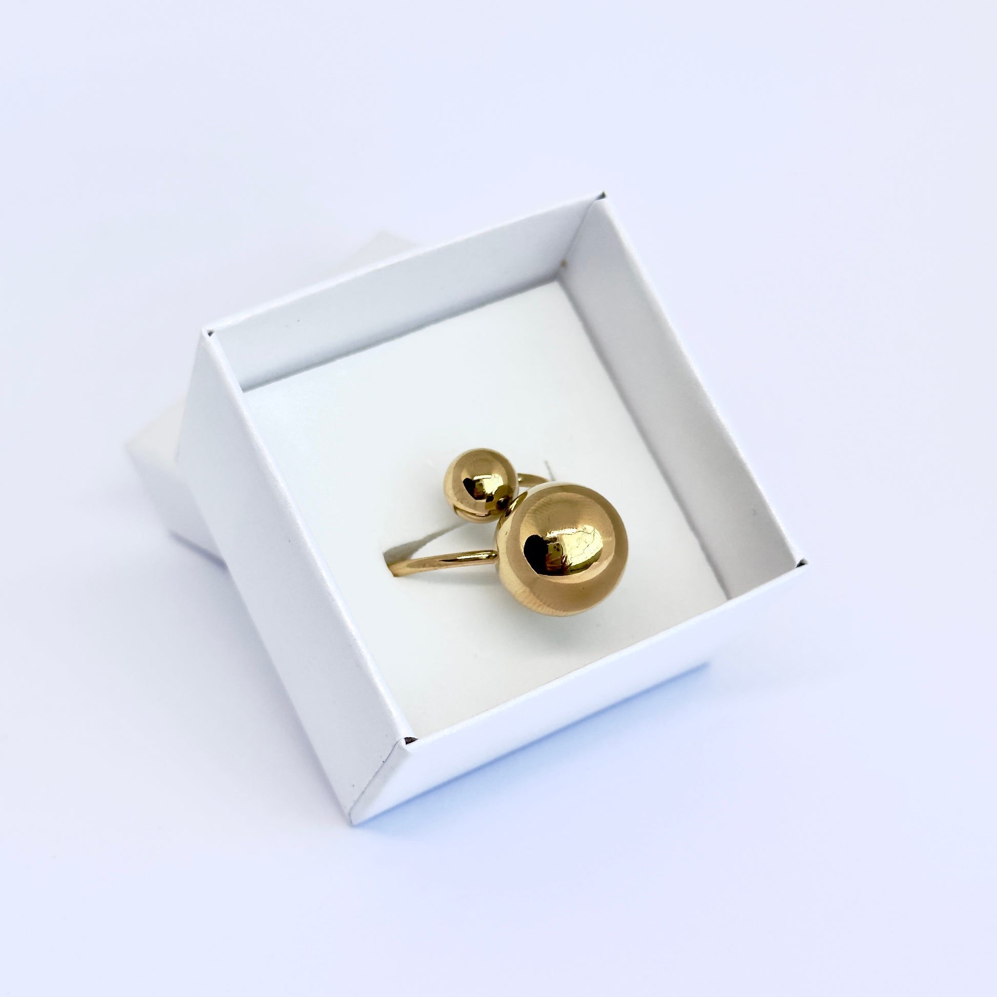 Let your style orbit around elegance. Inspired by the harmony of celestial bodies, the Earth Ring features two polished golden spheres a bold centerpiece and a delicate satellite, symbolizing the balance between strength and grace. A timeless design that captures the beauty of cosmic connection.