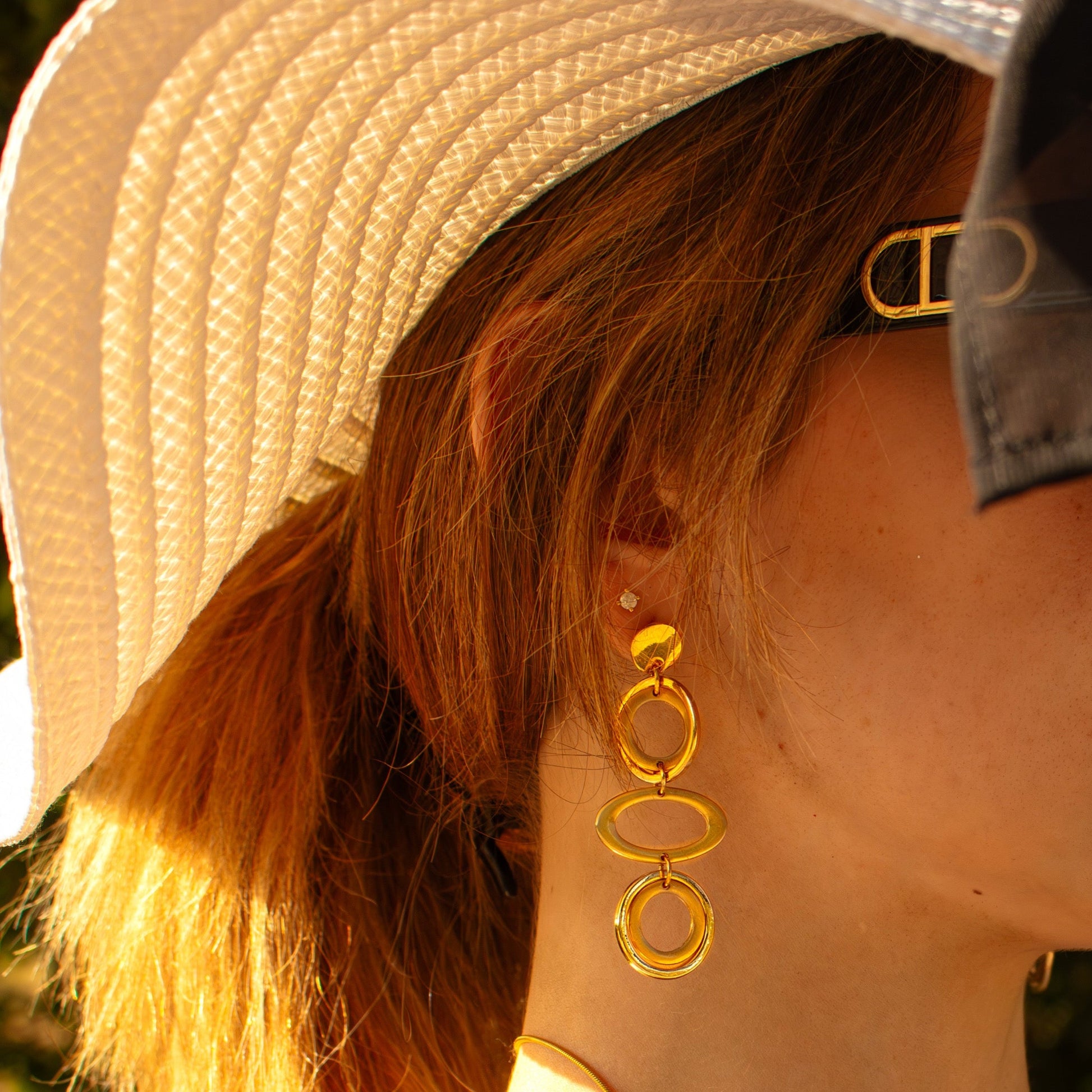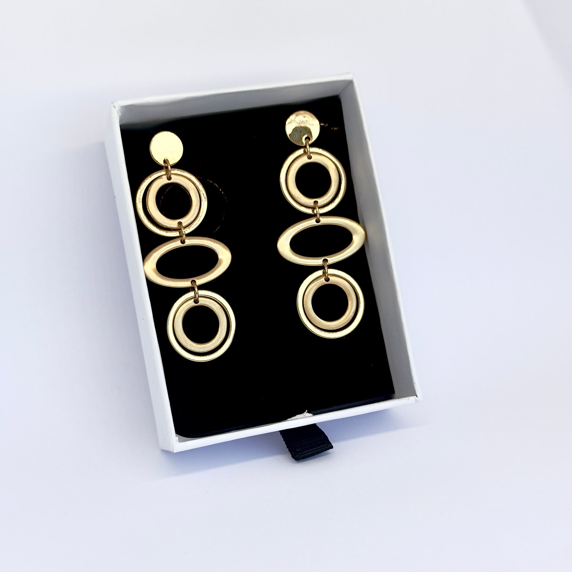 Golden Meduza Earrings with interlinked circles, a statment of modern elegance and fluid design.