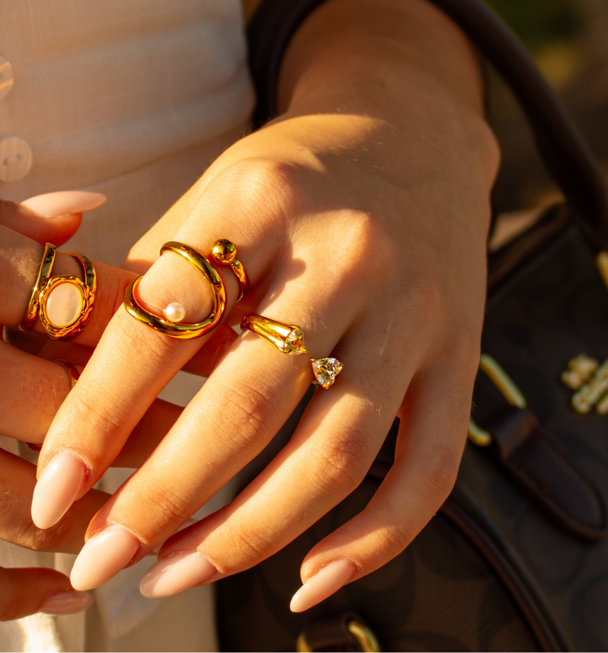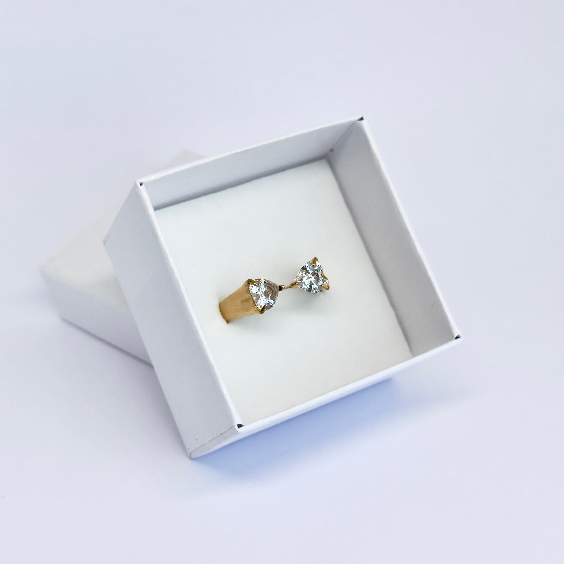 Striking yet timeless, the Radiant Ring features two brilliant stones that seem to reach for one another, capturing light with every movement. This golden masterpiece symbolizes connection and elegance, perfect for adding a touch of refined sparkle to your everyday style or evening looks.