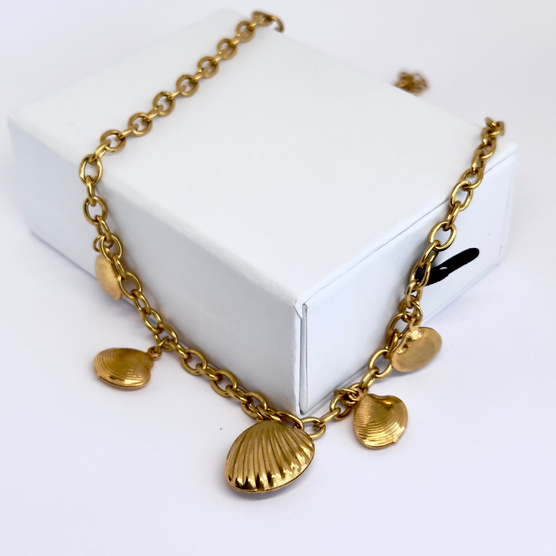 A tribute to seaside elegance, the Shell Necklace features delicate shell pendants along a fine chain — capturing the effortless beauty of coastal days and sunlit escapes.