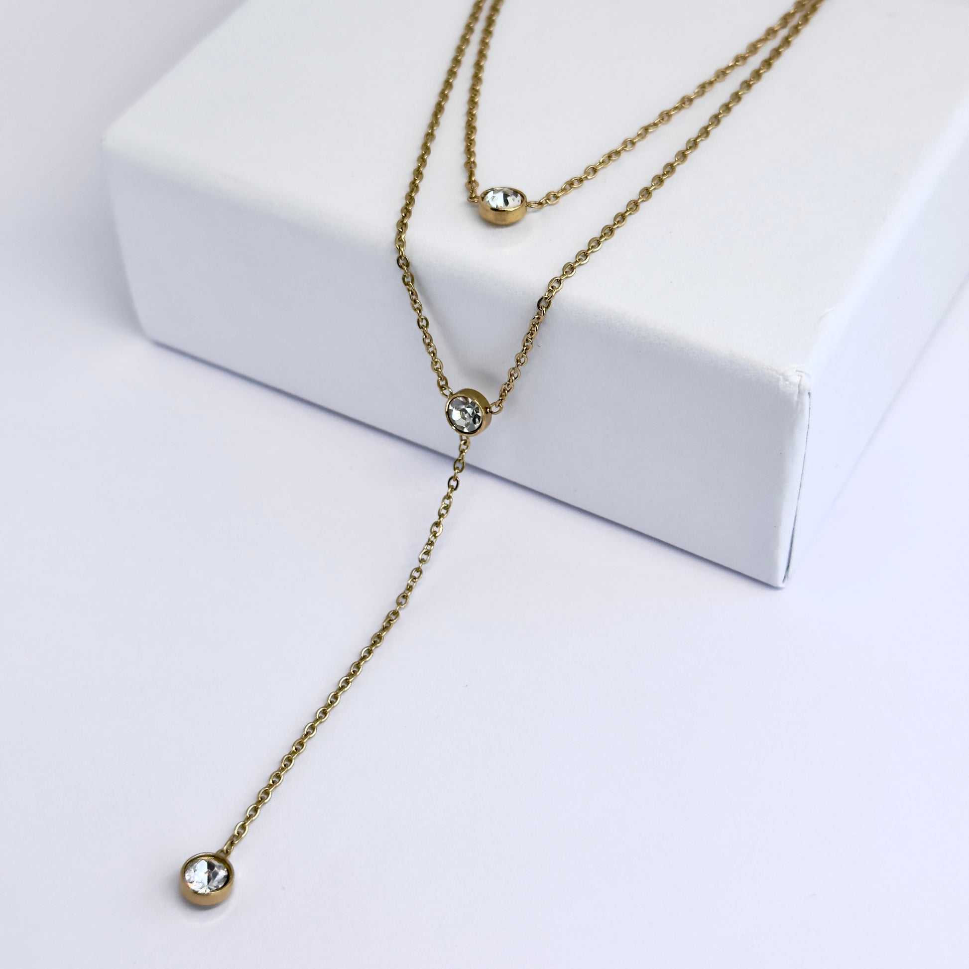 Refined and minimal, the Trio Light Necklace features a slender chain adorned with three tiny, radiant stones — a quiet celebration of simplicity and sparkle. Each stone is delicately spaced, catching the light with every movement, adding a whisper of elegance to your neckline. A timeless piece designed for effortless sophistication, day or night.